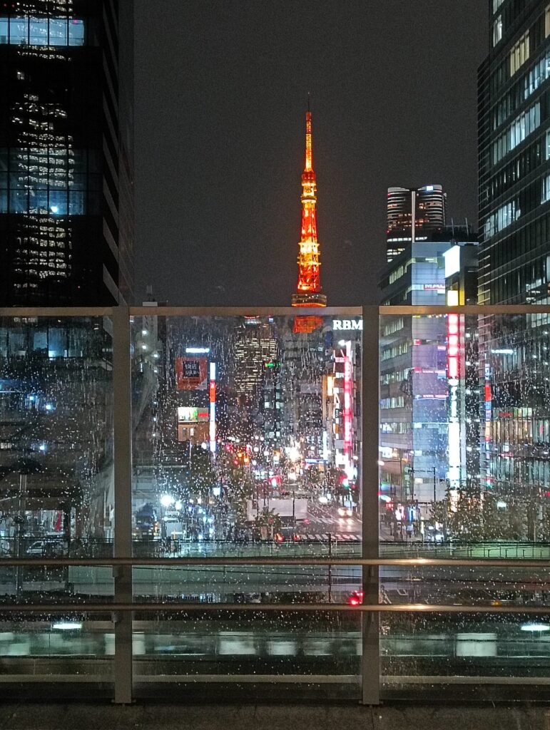 歩行者デッキからは、レインボーブリッジ・浜離宮庭園・東京タワーが一望でき、すっかりお上り気分