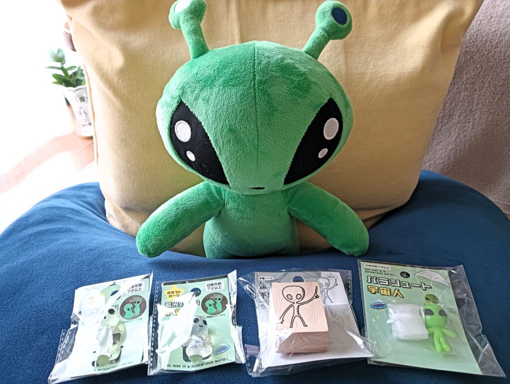 また、蓄光パーツの👽は、暗い時間にぼ~っと浮かび上がる姿を想像し、一番のニヤニヤだと思ってある場所に仕込んだのですが…あれ?思ったほど光らない(汗)小さすぎるからかな?でも、気になる方には見つける事自体が楽しいかな~と思い、ある場所に置いたままにしてあるのでぜひ探してニヤニヤしてくださいませ