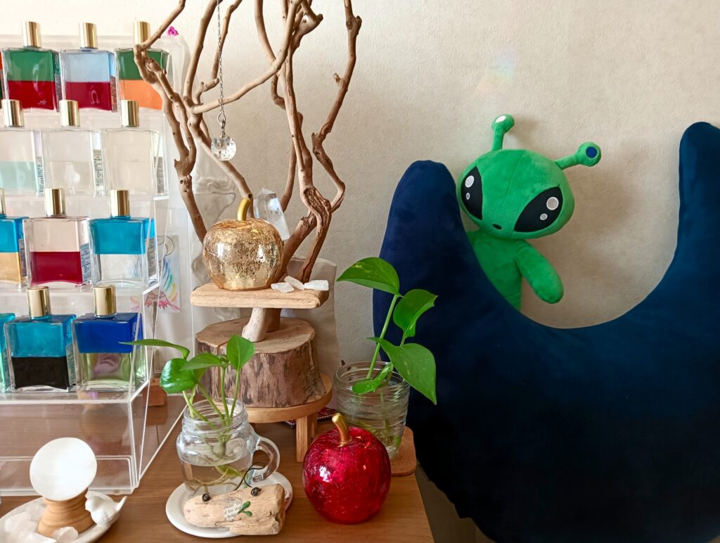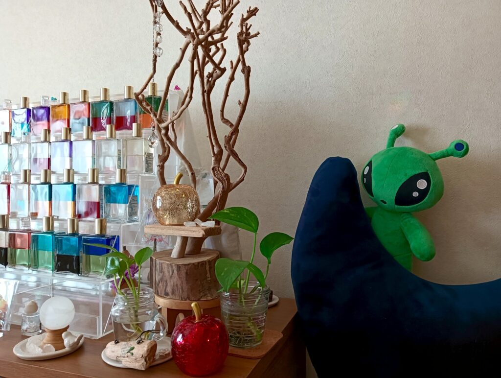 など、癒しと調え(整えでもある)の場にこの手のぬいぐるみって普通は置いていないよなぁ…と弱気になりつつも、普段から「普通って何?」派な私としては、「置きたい」と思ったので素直にその心に従ってみたところ、皆さまの心にも響いて今や人気者になっています