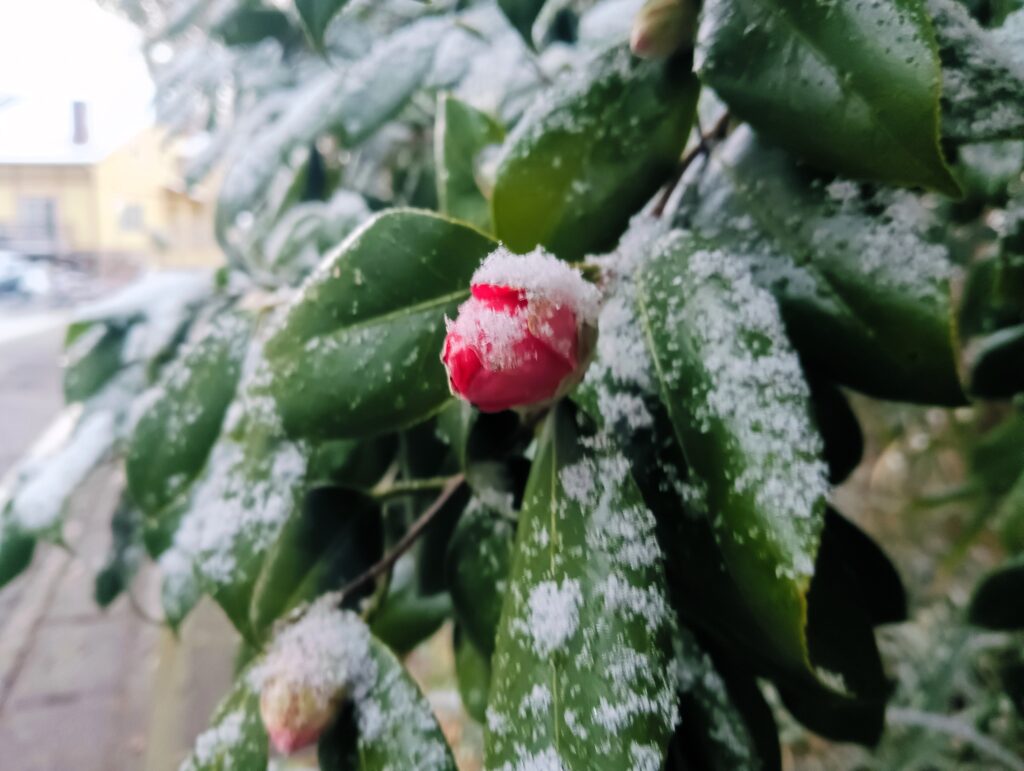 北鎌倉の雪化粧した植物たち
