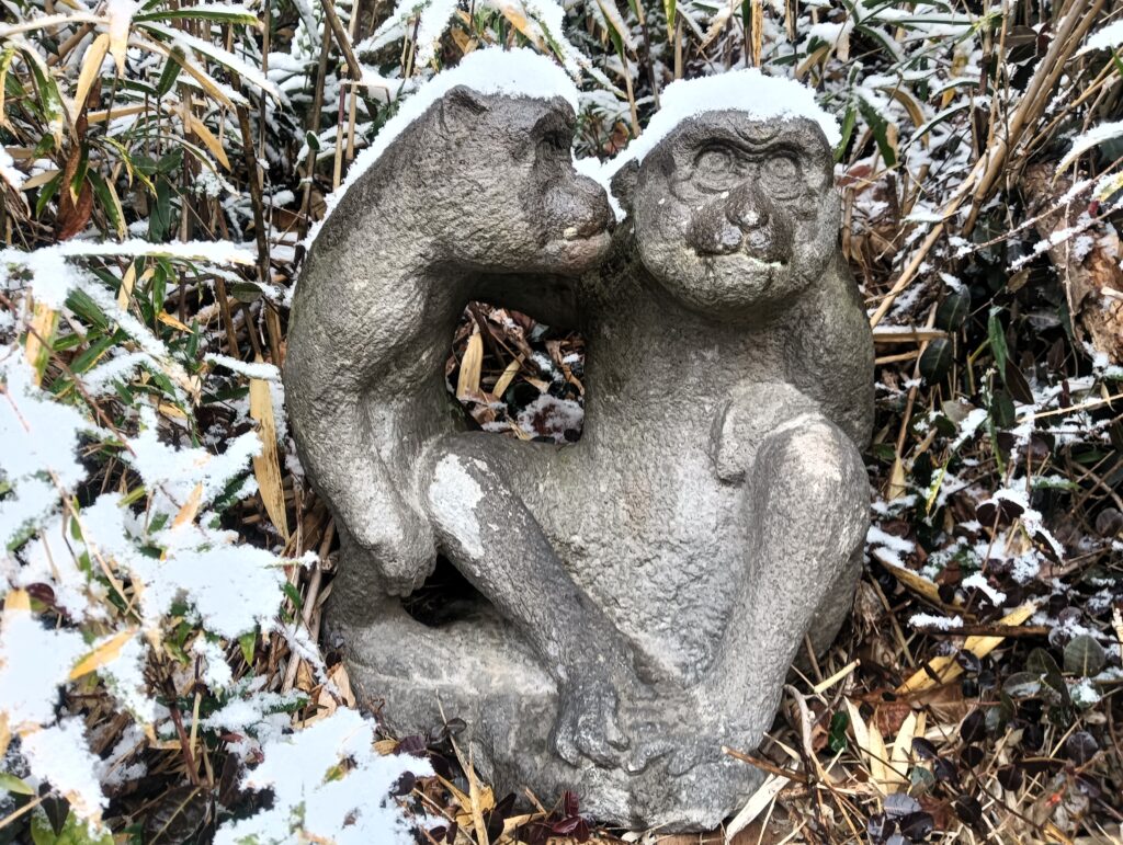 そして、角度によって会話の内容が聞こえてきそうな2匹の猿の像は、季節毎に気になる存在